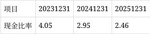 ?现金比率持续下降。近三期年报,现金比率分别为4.05、2.95、2.46,持续下降。