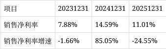 ?销售净利率大幅下降。报告期内,销售净利率为11.01%,同比大幅下降24.55%。