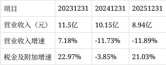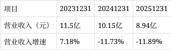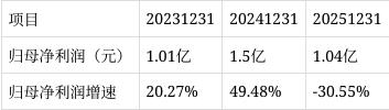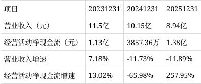 报告显示,公司2025年全年营业收入为8.94亿元,同比下降11.89%;归母净利润为1.04亿元,同比下降30.55%;扣非归母净利润为4698.25万元,同比下降2.99%;基本每股收益0.23元/股。
