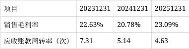 ?销售毛利率增长,应收账款周转率下降。报告期内,销售毛利率由去年同期20.78%增长至23.09%,应收账款周转率由去年同期5.14次下降至4.63次。