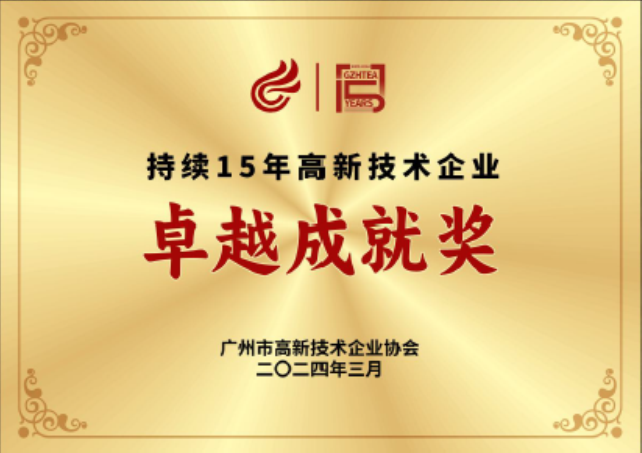近日,广东省科学技术厅、广东省财政厅、国家税务总局广东省税务局公布了“高新技术企业”奖。我司自 2008 年首次通过国家科技部高新技术企业认定以来,通过了历次复审,持续获得“15 年的高新技术企业”,并荣获市科技部门“持续 15 年的高新技术企业卓越成就奖”。