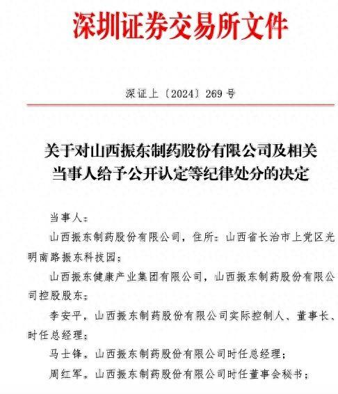 一、对山西振东制药股份有限公司实际控制人、董事长李安平,财务总监刘长禄给予公开认定三年不适合担任上市公司董事、监事、高级管理人员的处分;上述人员,自深交所作出决定之日起,在认定期间内,除不得继续担任原上市公司董事、监事、高级管理人员职务外,也不得担任其他上市公司董事、监事、高级管理人员职务。