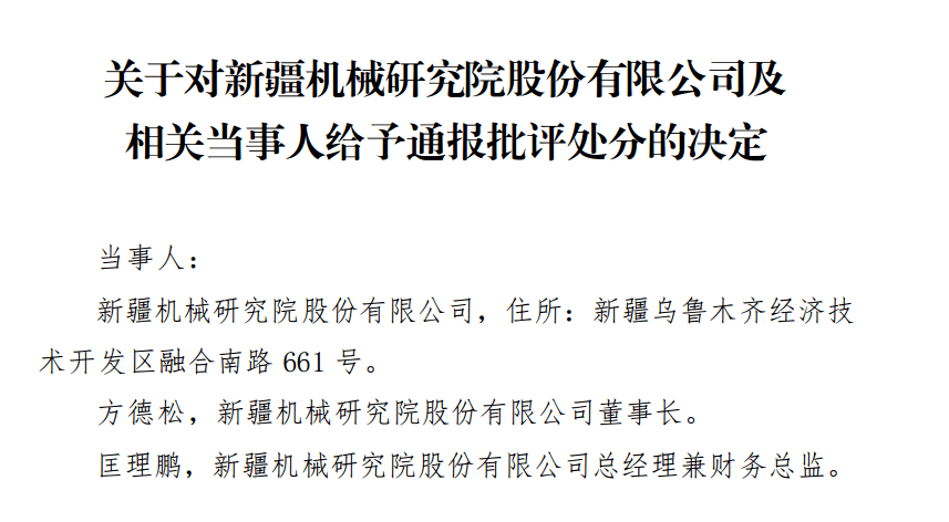 2021年12月15日,深交所已对新研股份及公司部分责任人员给予通报批评的处分。