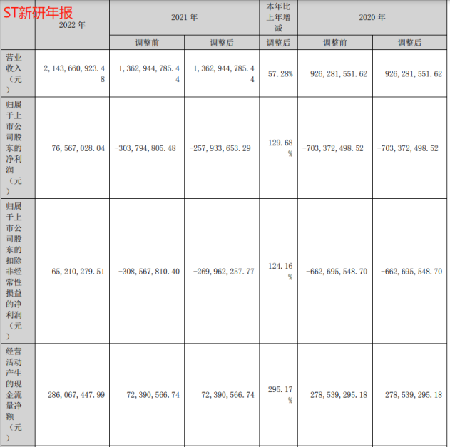 2021年,ST新研经过调整后的亏损面收窄,2022年该公司扭亏为盈,但盈利规模较小。