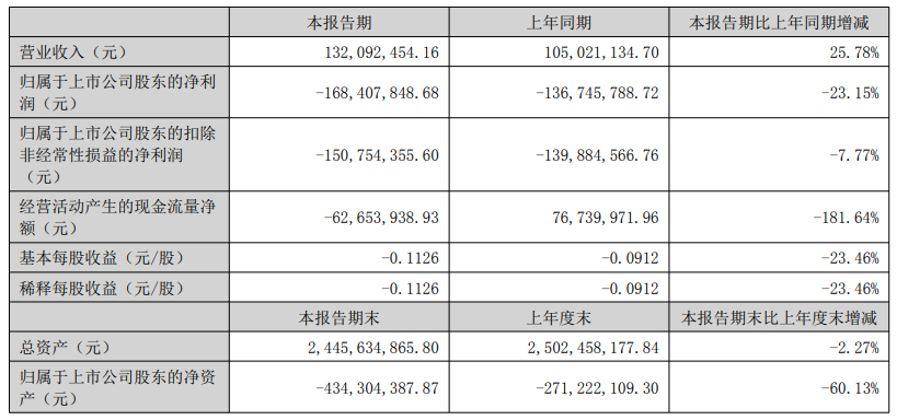 新疆机械研究院股份有限公司(证券简称:*ST新研,证券代码:300159)8月27日发布2025年半年度业绩报告称,2025年上半年营业收入约1.32亿元,同比增加25.78%;归属于上市公司股东的净利润亏损约1.68亿元;基本每股收益亏损0.1126元。2024年同期营业收入约1.05亿元;归属于上市公司股东的净利润亏损约1.37亿元;基本每股收益亏损0.0912元。