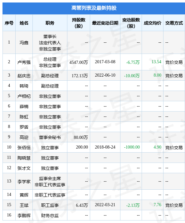 秀强股份的高管列表及最新持股情况如下: