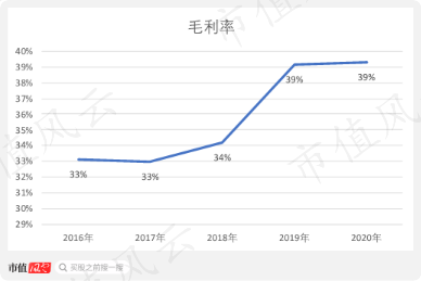 首先来看看,华中数控的毛利率,一直都高于30%,2019年和2020年毛利率有39%。