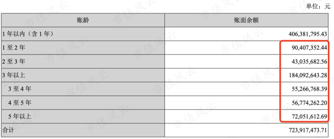 而且应收账款的账龄一年以上的占比十分之高,有44%。