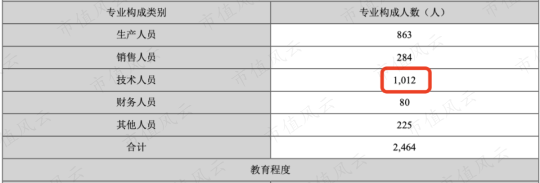 华中数控2020年有员工2464名,其中技术人员就有1012名,占比41%。