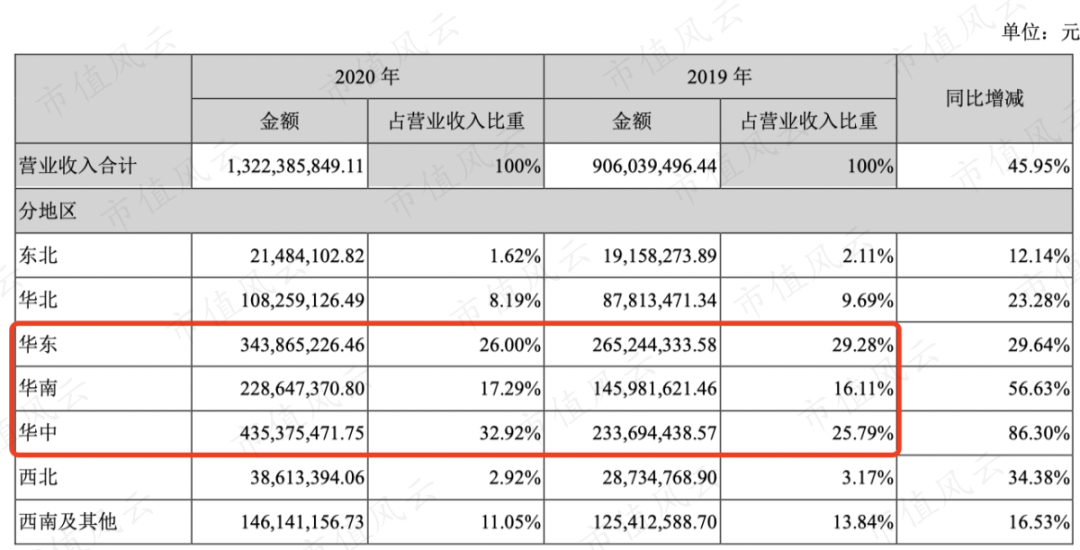 而制造业相对在东部地区相对发达点,因此华中数控的收入也主要集中在华东、华南、华中三个地方。