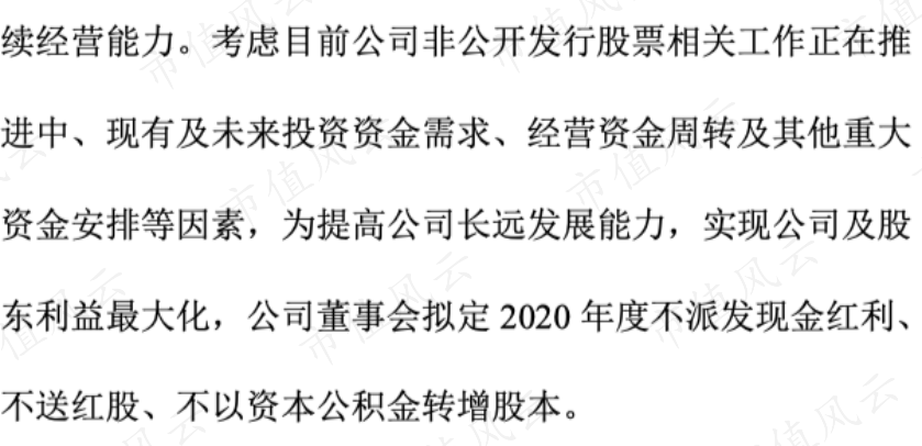 2020年还停止分红了,原因是定增中、未来资金需求、经营资金周转等。