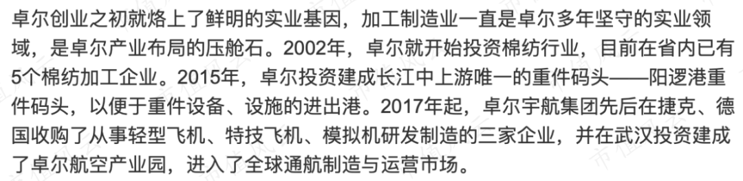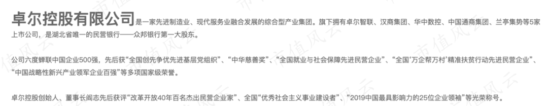 卓尔制造和卓尔智联之上还有卓尔控股,从文字介绍就可以看出是家多元化集团控股公司。