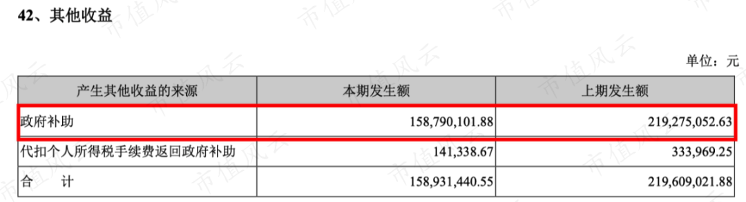 其中2020年政府补助有1.58亿,2019年有2.19亿。