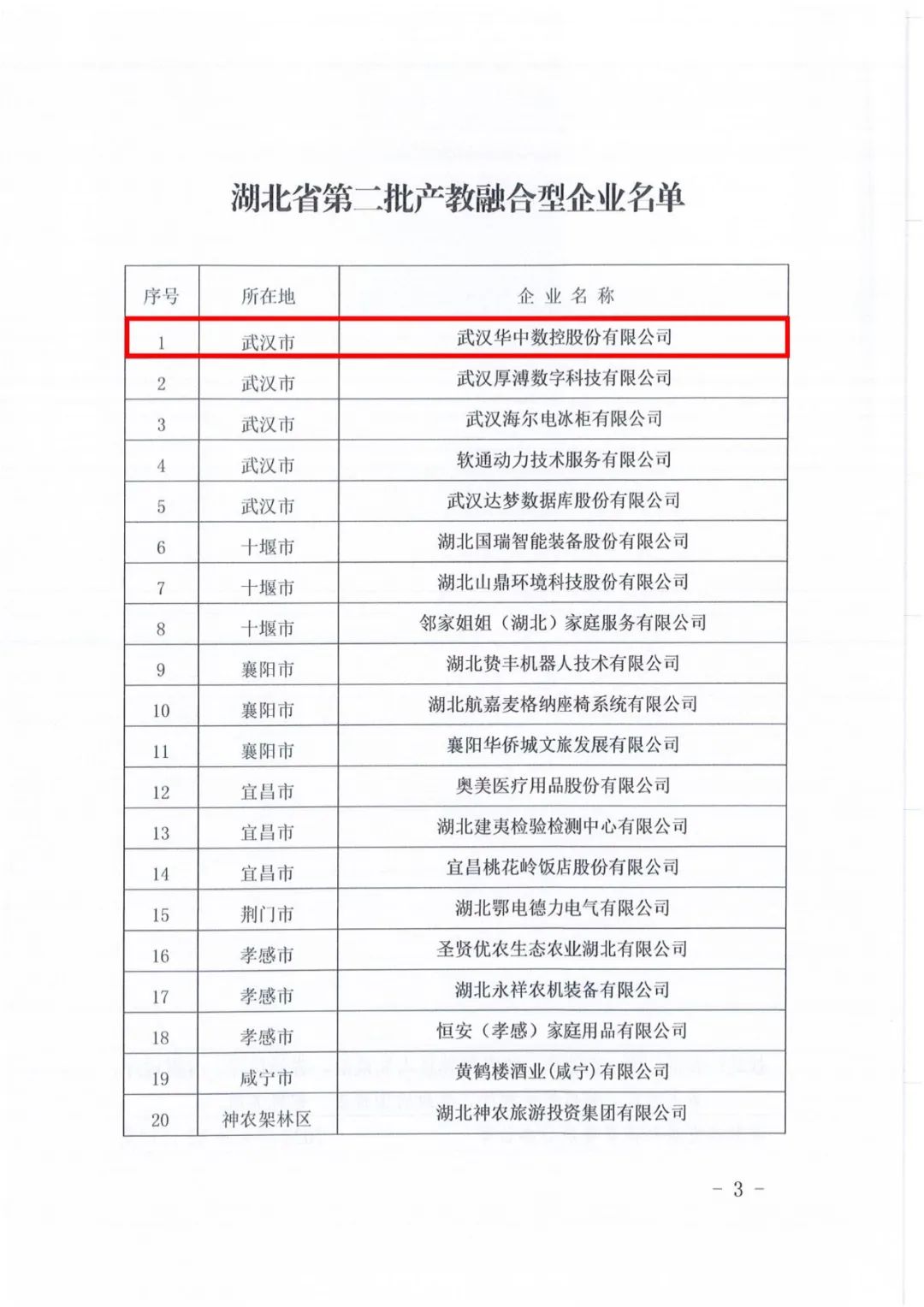 近日,湖北省发改委、省教育厅联合印发《湖北省第二批产教融合型企业名单》,武汉华中数控股份有限公司(以下简称“华中数控”)入选为湖北省认定的20家产教融合型企业之一。