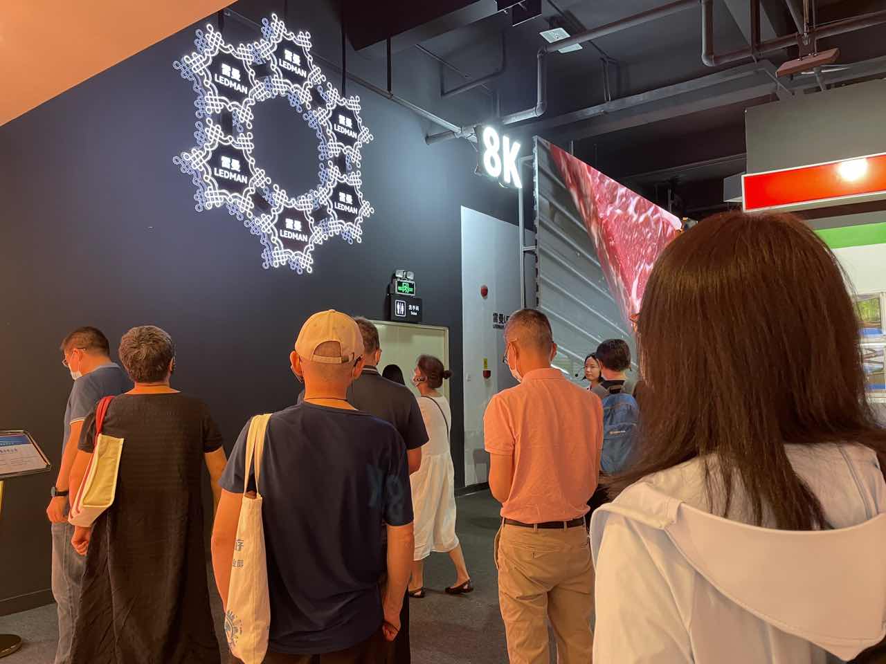 参访过程中,投资者通过视听等多维互动体验了解雷曼光电高科技研发成果,包括8K展览展示、模拟监控中心、沉浸式天幕屏、会议屏、私人影院等多个COB高清显示产品的应用场景。投资者对于超高清巨幕屏的沉浸式视觉盛宴赞叹不已,并纷纷体验足球撞屏、裸眼3D等功能。