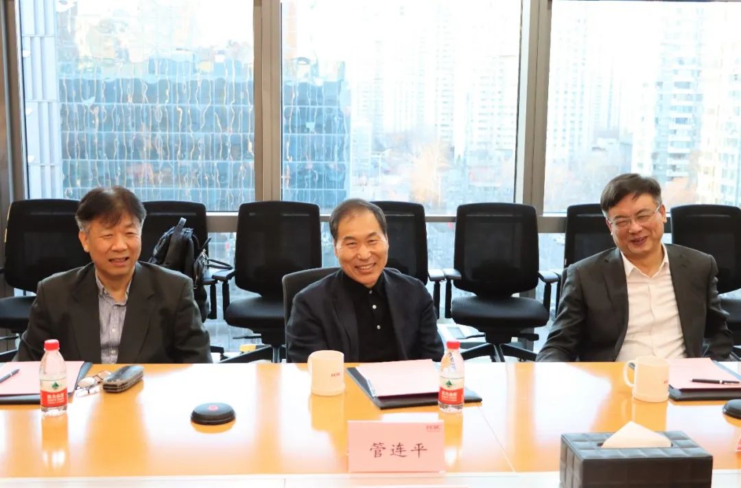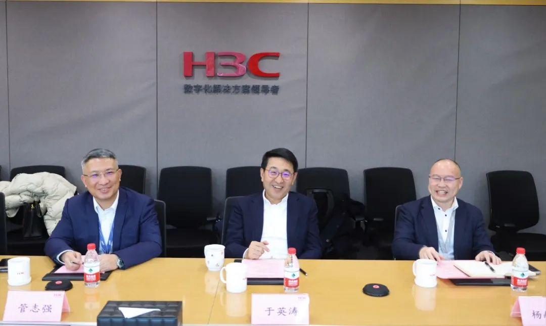 紫光股份董事长、新华三集团总裁兼首席执行官于英涛,新华三集团高级副总裁、行业BG总裁杨献波,新华三集团副总裁、企业事业部总经理管志强