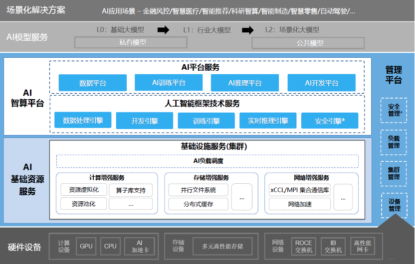 开放智算产业联盟在Linux基金会AI Data及中国开源软件推进联盟的指导之下,以快速解决AI行业落地的痛点为整体目标,围绕如何建设算力的集成服务中心这一基础性工作开展,聚焦AI智算平台以及部分AI基础资源服务相关领域的技术研究。技术范围中,蓝色部分主要聚焦于软件和应用部分研究;灰色和黑色部分,和相关的产业机构合作,构建场景化解决方案;安全相关部分依托联盟安全委员会进行实现。
