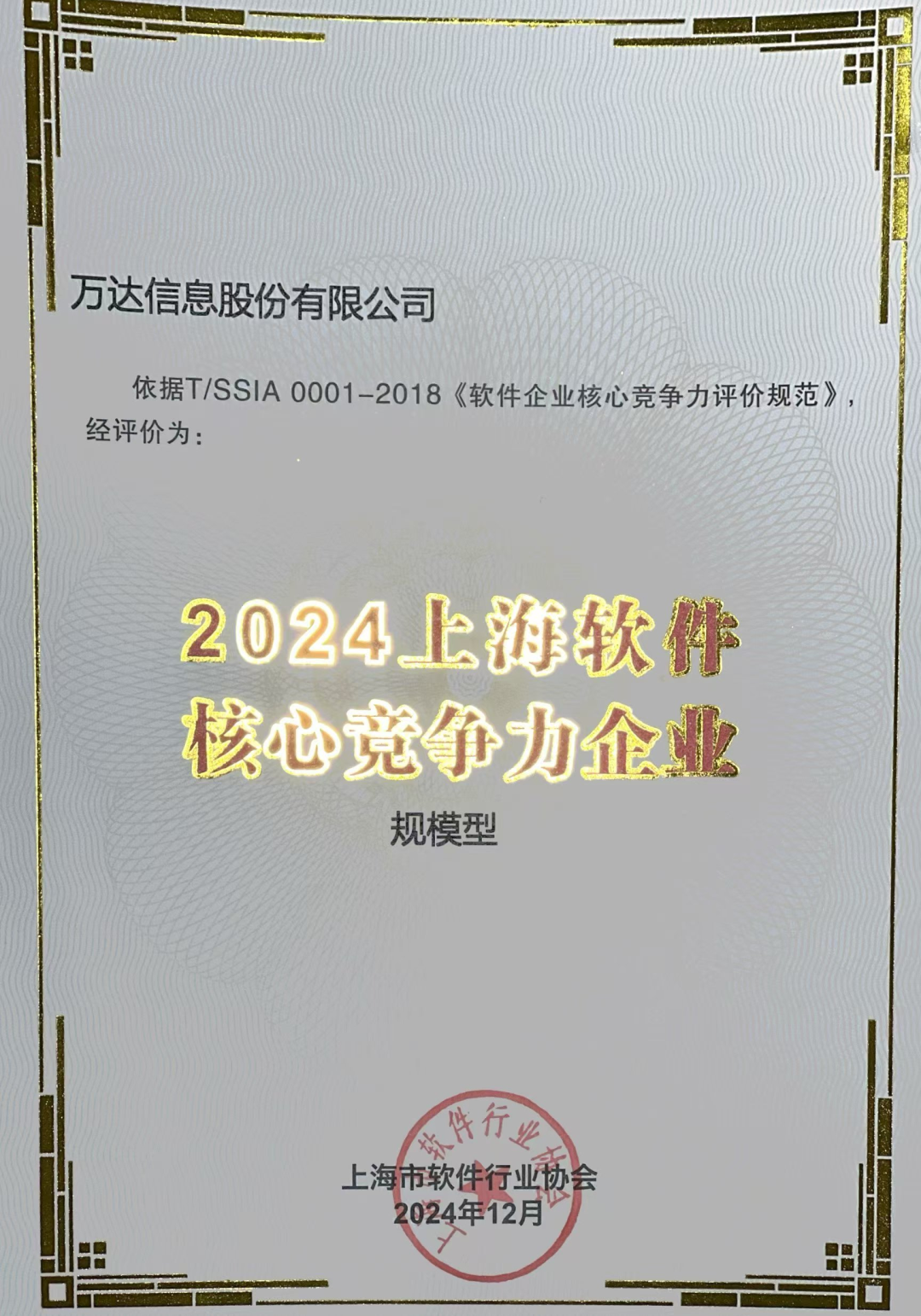 本次榜单中,万达信息及其全资子公司上海万达信息系统有限公司(以下简称“上海万达”)均获评“2024上海市软件企业核心竞争力评价(规模型)企业”荣誉称号,至今万达信息已连续七年获评“上海市软件核心竞争力企业”称号,上海万达自2020年起申报,已连续五年获此荣誉。