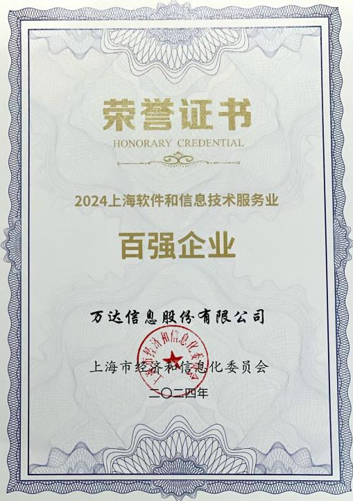 会上,上海市经济和信息化委员会发布了2024上海软件和信息技术服务业“双百”名单。该名单按照企业年度经营收入规模和增长速度,在市软件行业协会和各区软件和信息服务业主管部门推荐的基础上,对上海软件和信息技术服务业企业进行排名。万达信息成功入选“上海软件和信息技术服务业百强”。