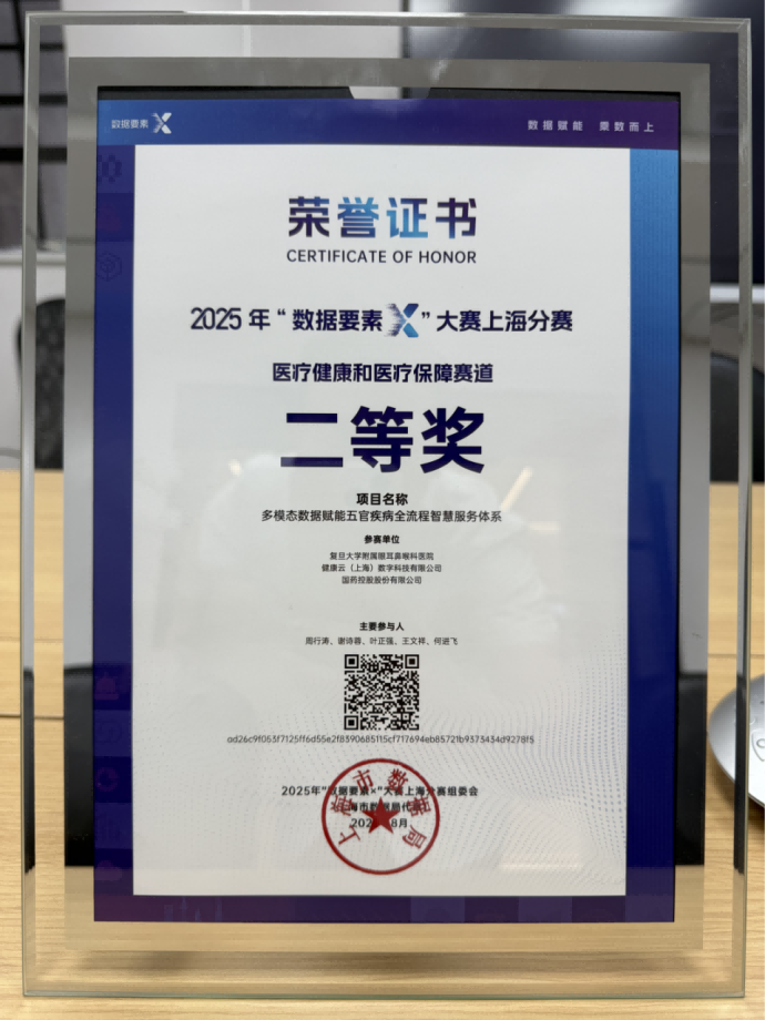 8月24日,由国家数据局指导的2025年"数据要素×"大赛上海分赛颁奖典礼在张江科学会堂举行。本次大赛中,由复旦大学附属眼耳鼻喉科医院牵头,万达信息股份有限公司(以下简称:万达信息)旗下健康云(上海)数字科技有限公司与国药集团上海有限公司联合申报的《多模态数据赋能五官疾病全流程智慧服务体系》项目,从600余个参赛团队中脱颖而出,荣获医疗健康赛道二等奖。该项目首创的跨机构数据协同模式,为破解医疗数据要素流通难题提供了"上海方案"。