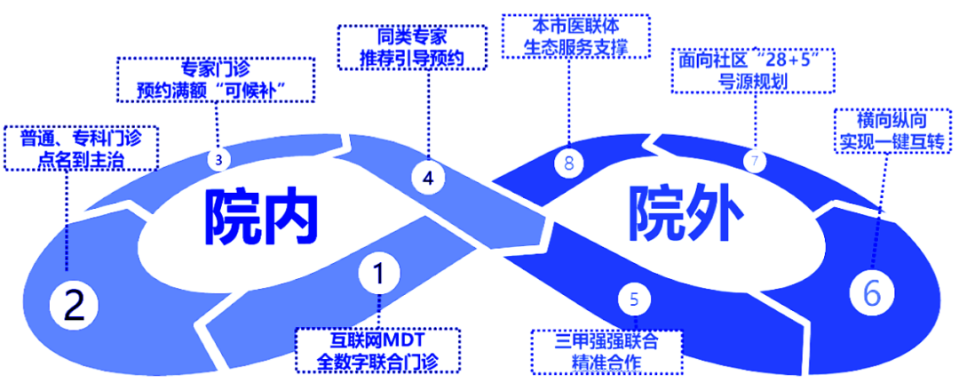 通过"数字医融体平台"实现跨院一键转诊、专家候补挂号及智能推荐,打通综合医院-专科医院-社区多级资源。患者可精准预约主治医生,数据互联共享,减少无效等待,构建分层诊疗闭环。