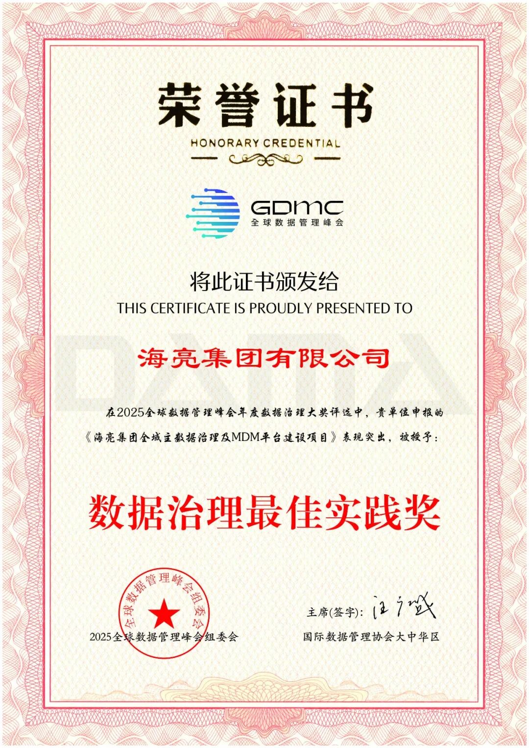 汉得主导落地的“海亮集团主数据治理项目”荣膺此项殊荣,作为数智化能力与企业战略深度融合的经典案例,该项目连续2年获评该奖项。