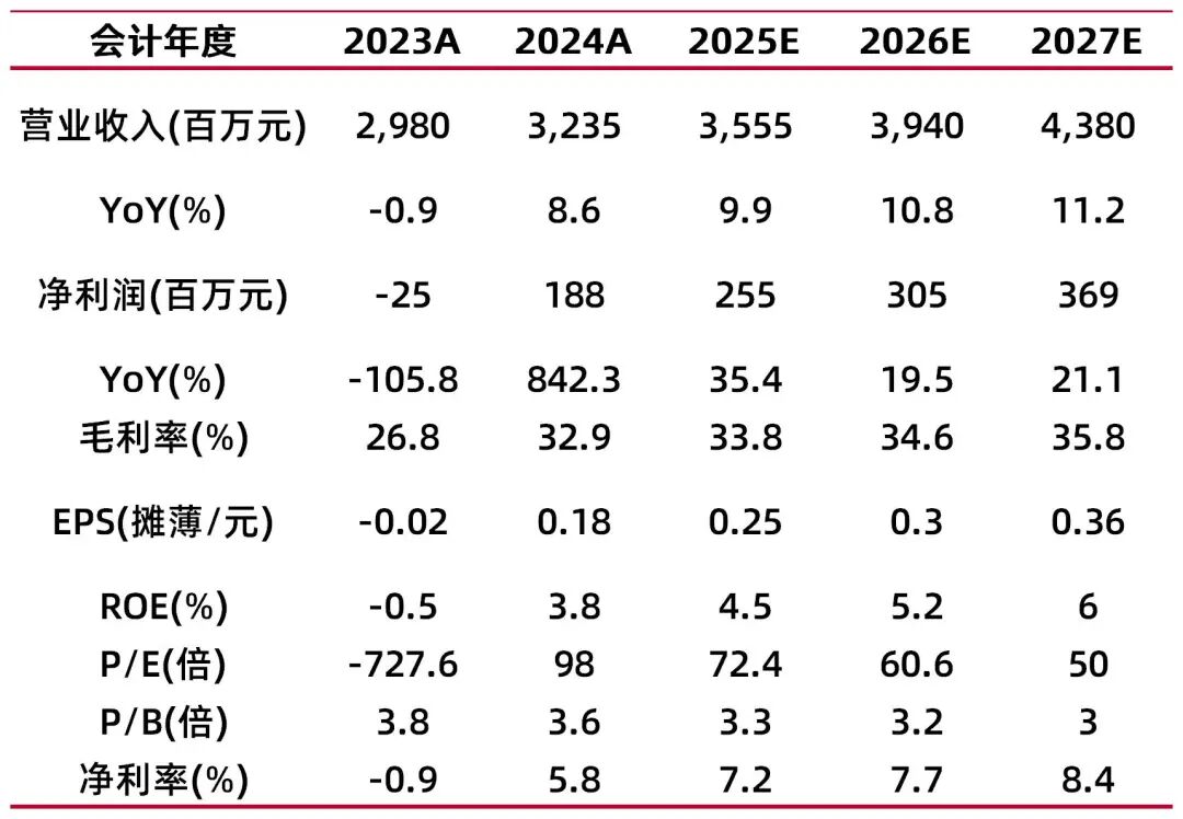 公司深耕智能制造、数字营销、大型企业财务管理领域,自主产品保持稳健增长。同时,随着AI产品体系持续完善及产品能力进一步提升,AI业务收入有望保持加速增长,调整盈利预测,预计公司2025-2027年EPS分别为0.25\0.30\0.36,对应公司10月31日收盘价18.10元,2025-2027年PE分别为72.4\60.6\50.0,维持“买入-A”评级。