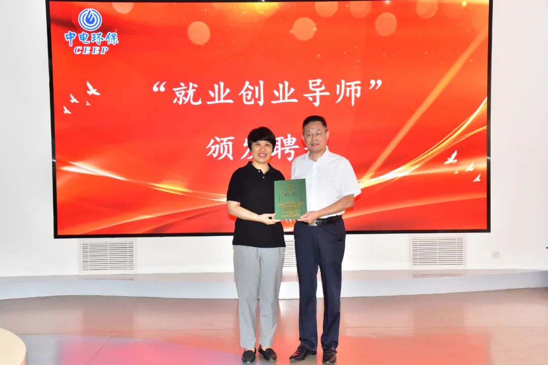 南师大环境学院党委书记杨燕为王政福董事长颁发“就业创业导师”聘书。