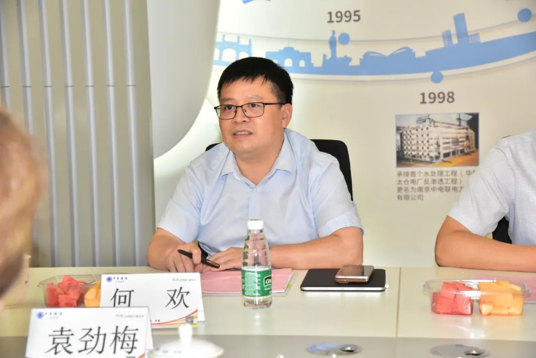 8月18日,南京师范大学环境学院走进中电环保,开展“访企拓岗促就业,产教融合向未来”的产学研交流活动。南师大环境学院党委书记杨燕、院长何欢、党委副书记徐生林、副院长宋海亮等一行莅临中电环保交流指导。中电环保集团董事长王政福、总工程师袁劲梅、科技公司副总经理吴相学、扬子江环境集团副总经理李娜等相关领导参与交流。