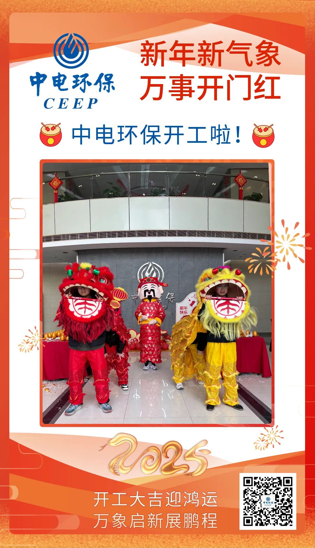 2月5日,中电环保开工迎鸿运,人力资源部组织舞狮、砸金蛋等丰富有趣的开门红活动,以万象启新之势,迎开门长虹。