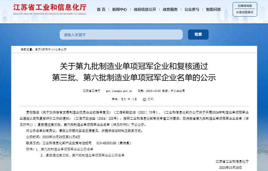 近日,江苏省工业和信息化厅公布了《第九批制造业单项冠军企业名单》,中电环保凭借核心产品“核电凝结水精处理设备”成功登榜,荣获“制造业单项冠军”这一国家级重磅荣誉。这不仅是对公司技术实力与市场地位的高度认可,也是中电环保在深耕工业水处理领域三十年征程中的又一重要里程碑。