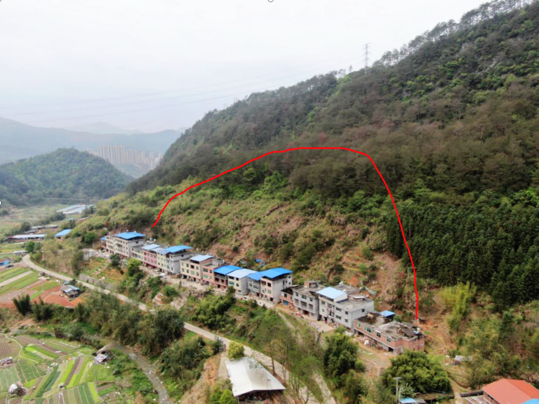 ▲南平市延平区水东街道黄坑源新村安置点潜在滑坡范围