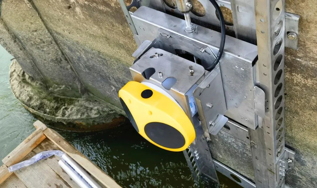随后,作业人员将ADCP测流传感器按垂直于河流的角度安装在支架上。这样一来,水文站可以根据河流的不同水位随时调整ADCP测流传感器的采集位置。