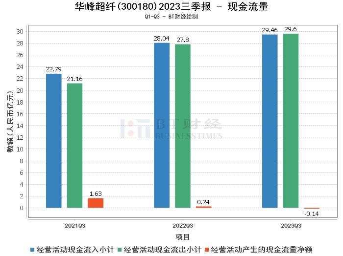 在现金流量方面,华峰超纤2023年三季度经营活动产生的现金流量净额为-1429.65万元,与上年同期的2430.03万元相比,出现了明显的下滑。经营活动现金流入小计为29.46亿元,较上年同期的28.04亿元有所增加。经营活动现金流出小计为29.6亿元,较上年同期的27.8亿元有所增加。这些数据显示,尽管公司的经营活动现金流入有所增加,但由于现金流出的增加,导致经营活动产生的现金流量净额出现了下滑。