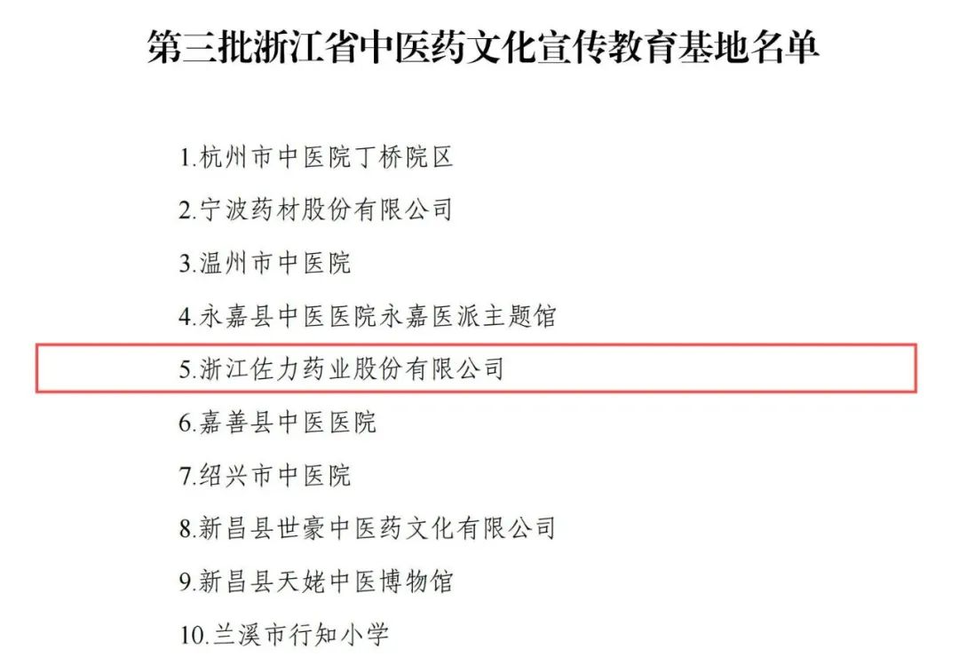 1月,浙江省中医药管理局在浙中医药函〔2024〕1号红头文件发布,浙江省中医药管理局关于公布第三批浙江省中医药文化宣传教育基地名单的通知。我司被授予“浙江省中医药文化宣传教育基地”的称号。