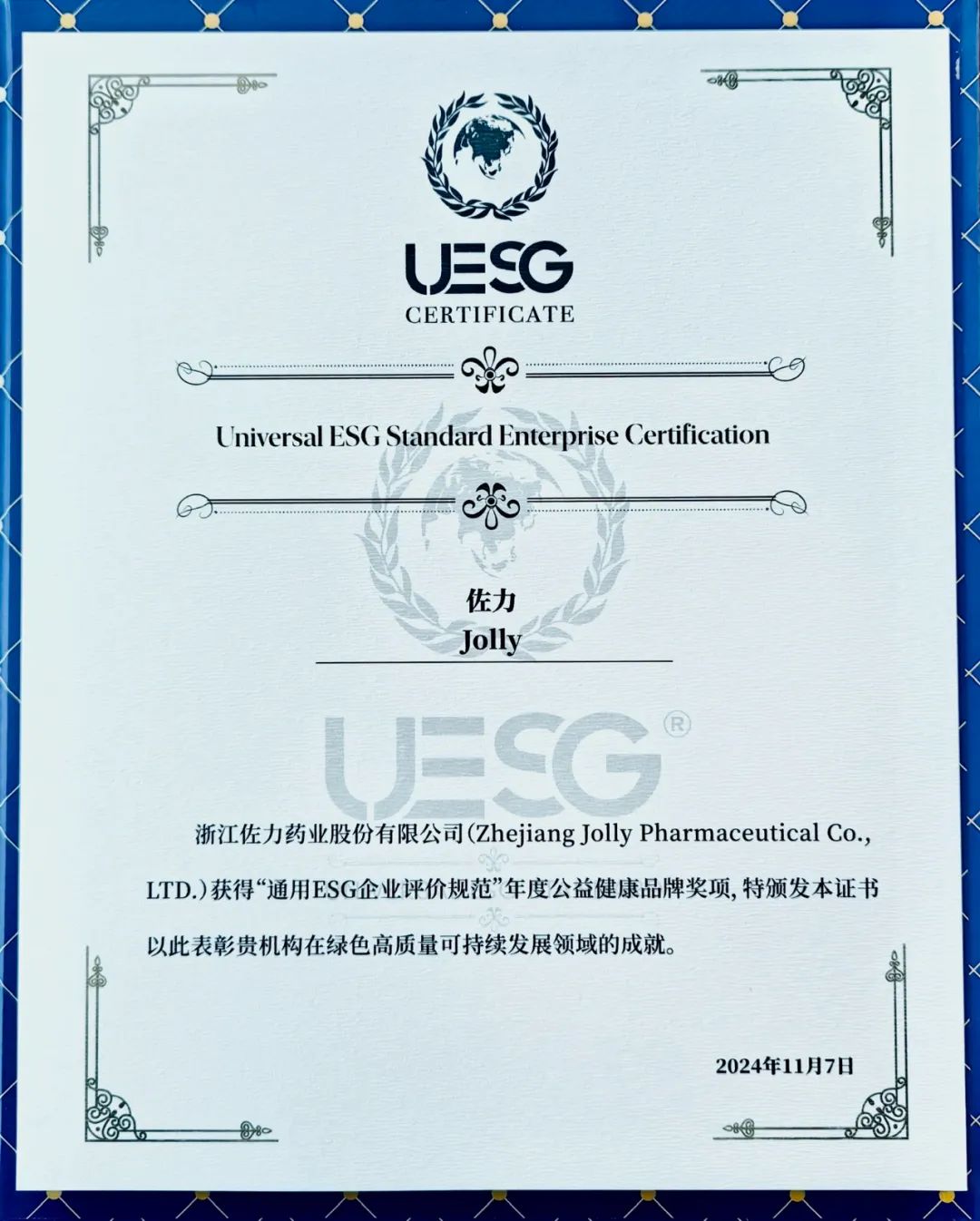 11月7日,由新华社新闻信息中心、新华社上海分社、新华网主办,新华社新闻信息中心上海中心承办的“品牌,让世界更美好”——中外品牌论坛,作为第七届中国国际进口博览会配套活动,在国家会展中心丝路厅举行。论坛上,佐力药业以其在ESG(环境、社会和公司治理)领域的杰出表现和对全球医疗健康企业ESG合规实践进程的积极贡献,荣获《通用ESG企业评价规范》When We ESG年度公益品牌奖。
