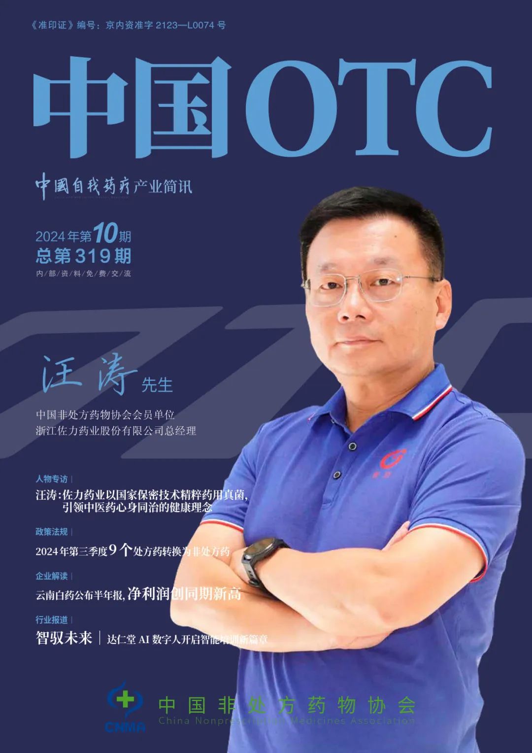 10月,浙江佐力药业股份有限公司总经理汪涛先生荣登2024年第10期《中国OTC》杂志期刊封面。汪涛先生以《佐力药业以国家保密技术精粹药用真菌,引领中医药心身同治的健康理念》进入人物专访。