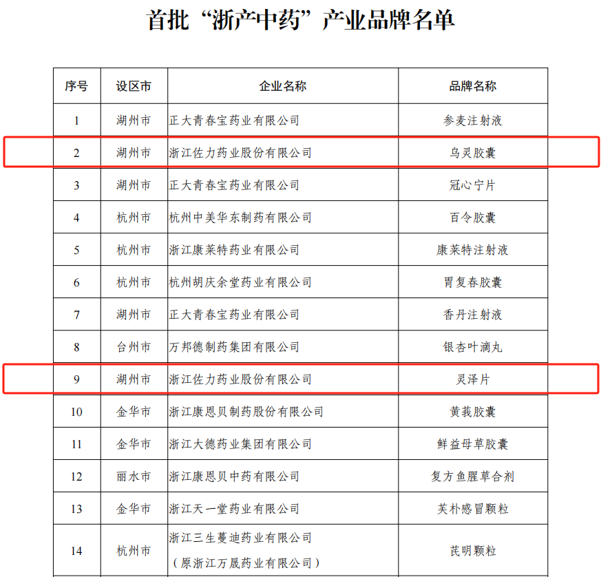 3月,由浙江省经信厅牵头,联合浙江省农业农村厅、浙江省卫生健康委、浙江省医保局、浙江省供销社、浙江省林业局、浙江省中医药管理局、浙江省药监局等浙江省省级相关部门,会同有关行业协会、业内专家组织实施开展“浙产中药”产业品牌遴选工作。佐力药业的乌灵胶囊和灵泽片双双获评首批“浙产中药”产业品牌。