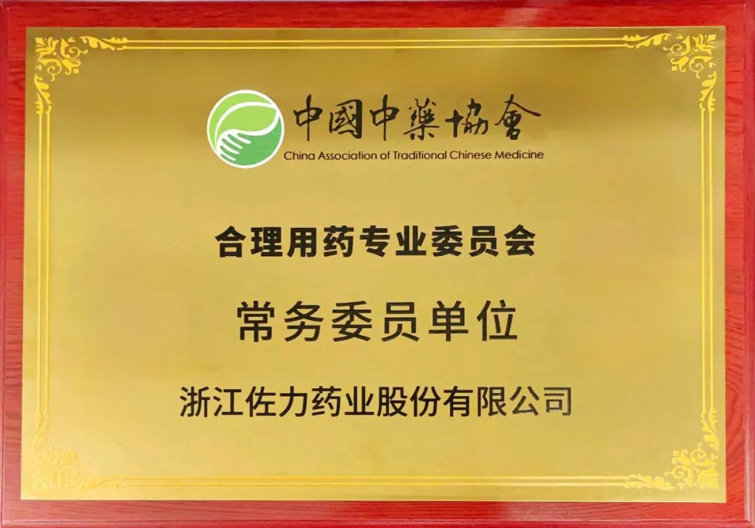 1月18日,佐力药业荣获中国中药协会“合理用药专业委员会常务委员单位”证书。