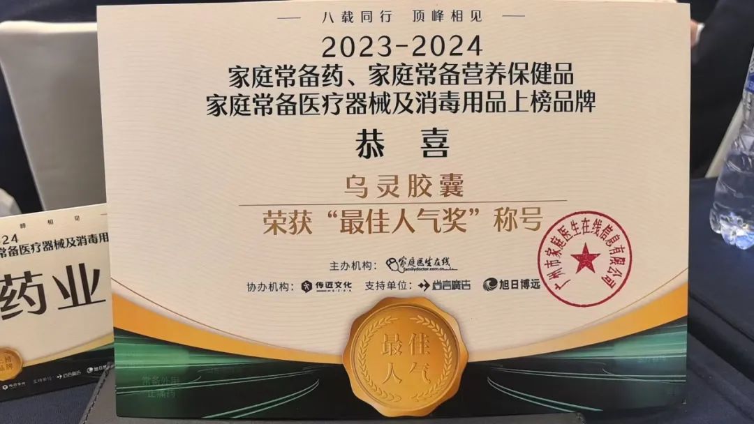 11月19日,由家庭医生在线发起的“2023-2024家庭常备药、家庭常备营养保健品、家庭常备医疗器械及消毒用品上榜品牌”颁奖典礼在武汉举行。佐力药业的明星产品:乌灵胶囊,荣耀登榜“家庭常备安神助眠药”、“家庭常备老年认知障碍用药”及“家庭常备增强记忆用药”三大品牌榜单。同时凭借卓越的口碑、显著的疗效以及深入人心的品牌形象,从众多竞争者中脱颖而出,荣耀加冕“最佳人气奖”的桂冠。