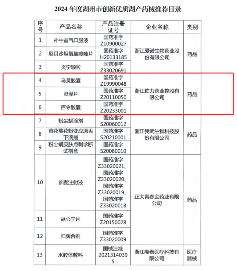 8月9日,佐力药业荣登2024年度湖州市创新优质湖产药械推荐目录。