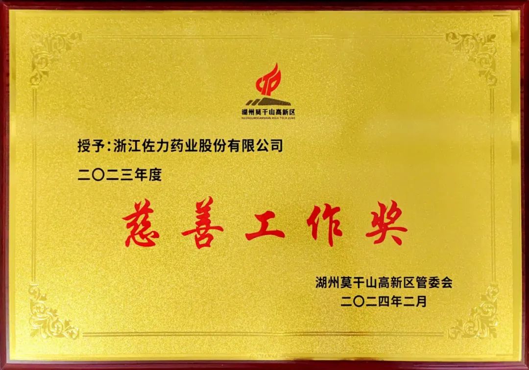 7月2日,中国共产党成立103岁周年之际,佐力药业荣获湖州莫干山高新区2023年度慈善工作奖,推进慈善事业发展过程中继续发挥作用,为高标准推进共同富裕添砖加瓦。