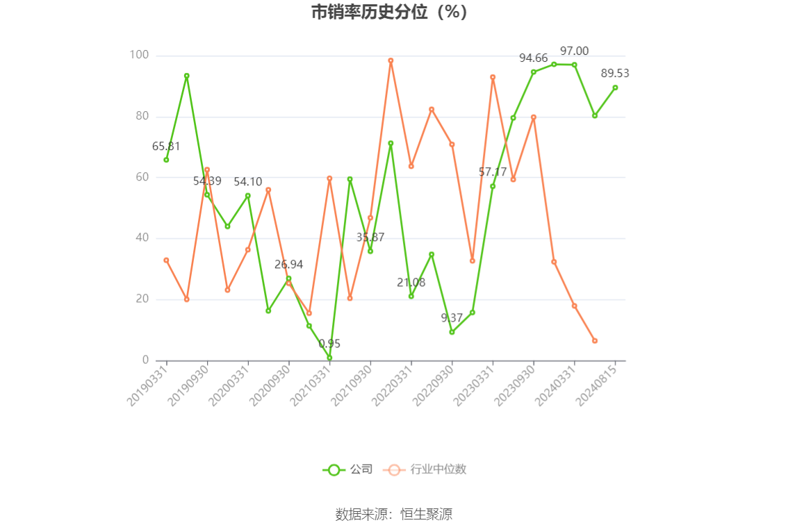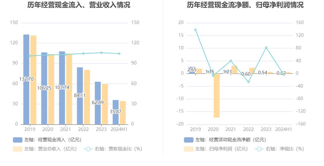 2024年上半年,公司营业收入现金比为104.46%,净现比为-3.09%。