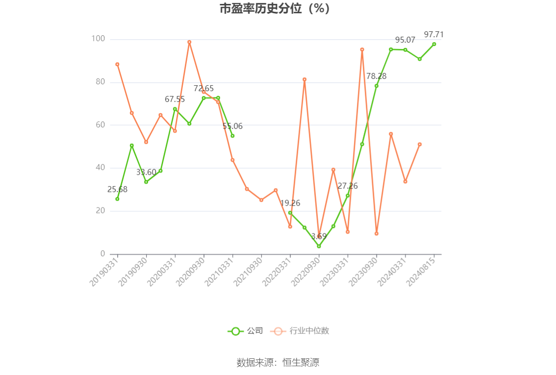 市盈率为负时,不显示当期分位数,会导致折线图中断。