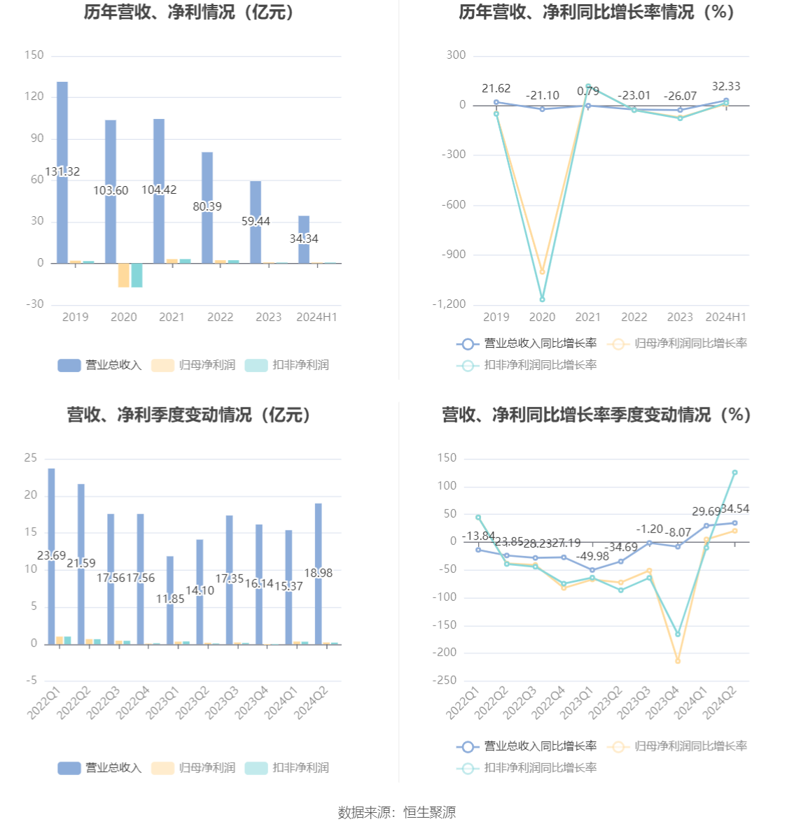 根据半年报,公司第二季度实现营业总收入18.98亿元,同比增长34.54%,环比增长23.49%;归母净利润2274.01万元,同比增长20.50%,环比下降35.48%;扣非净利润2058.55万元,同比增长125.41%,环比下降37.90%。