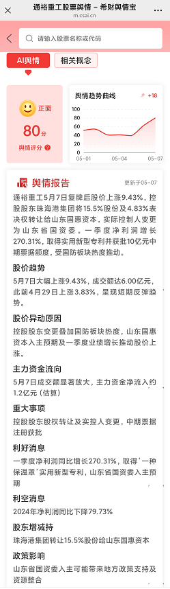 5月7日,通裕重工(300185.SZ)复牌首日暴涨9.43%,国资13亿入主与一季度净利润暴增270%的双重利好点燃市场热情。