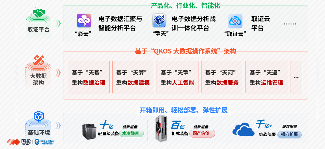 乾坤大数据操作系统(QKOS)(点击此处了解详情)提供跨行业、跨领域的大数据资源生产、开发、运维、运营、安全等全生命周期的服务能力,支撑各行业大数据基础能力、领域中台、业务应用的快速构建,同时解决各行业大数据项目跨领域难、交付质量低和实施成本高等问题,满足城市级新型数字基础设施、行业大数据基座、大数据产品研发基座等多场景需求。除了“九天揽月”实战工具、“彩云”电子数据汇聚与智能分析平台、“擎天”电子数据分析战训一体化平台等“成员”,取证云平台整体正式融入QKOS“大家庭”。
