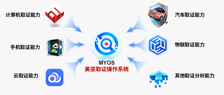 MYOS取证操作系统是美亚柏科融合取证领域多年积累的取证能力,包括计算机取证能力、手机取证能力、云取证能力、汽车取证能力、物联取证能力等,倾力打造的一款提供全证据链电子数据提取、恢复、分析和检验鉴定能力的操作系统,以“统一架构、统一板卡、统一标准、统一应用、统一生态”重构取证生态。依托MYOS,美亚柏科将与生态伙伴快速构建全行业广义取证解决方案。