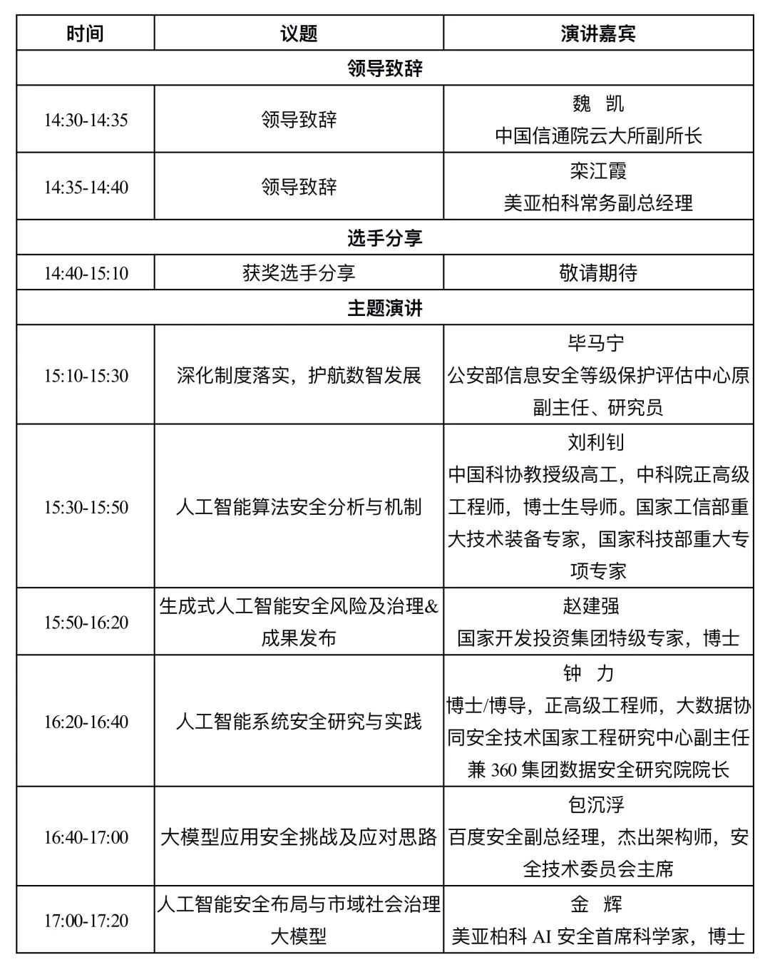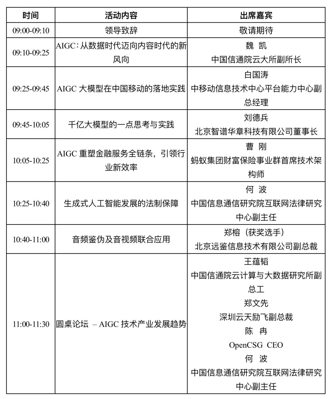 活动时间共2天,分为成果发布、城市AI创新发展、AIGC及智能安全四个单元。