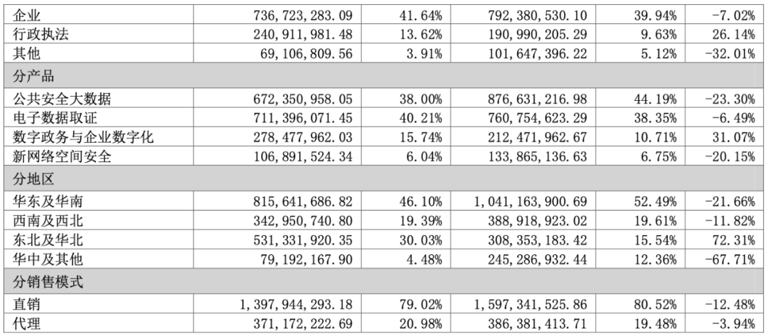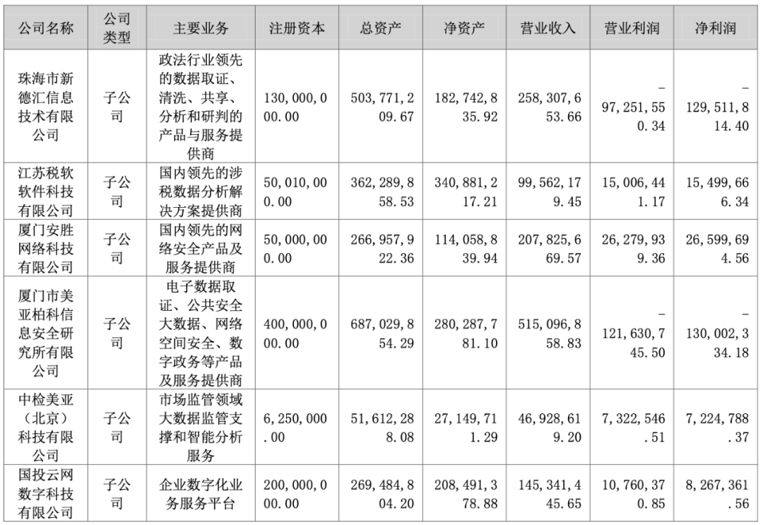 全资子公司新德汇:2024 年实现销售收入 25,830.77 万元,较上年度下降 19.58%,实现净利润-12,951.18 万元,较上年度下降 108.20%。新德汇收入和利润下降主要是由于受客户预算下降影响,电子数据取证业务需求出现暂时性下降,公共安全大数据业务实施进度较为缓慢,收入转化不及预期;整体市场需求不足,预计存货销售价格可能下降,存货计提减值增加。